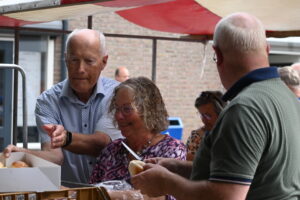 De start was bij Spek Tuincentrum, waar iedereen welkom werd geheten met koffie en appelgebak. Onderweg werden de fietsers verwend met belegde broodjes van Slagerij Markus, drankjes verzorgd door Boon’s Supermarkt en een lekker ijsje gesponsord door Stoutjesfarm.
