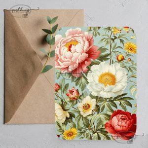 Een stevige, enkele ansichtkaart met linnenstructuur en craft envelop.